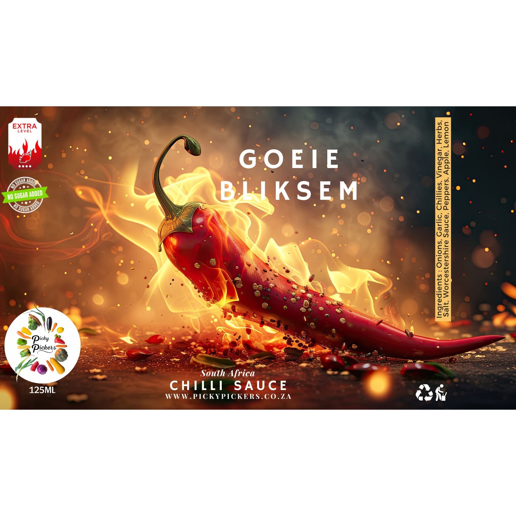 Not for the faint-hearted! Goeie Bliksem is a fiery, full-throttle chilli sauce made with chillies as the main ingredient—no fillers, no sugar, no nonsense. Bursting with intense heat and pure flavour, it’s the perfect kick for those who like their food with serious attitude. Made without artificial preservatives, just real heat and natural ingredients. A little goes a long way… Goeie Bliksem, indeed!